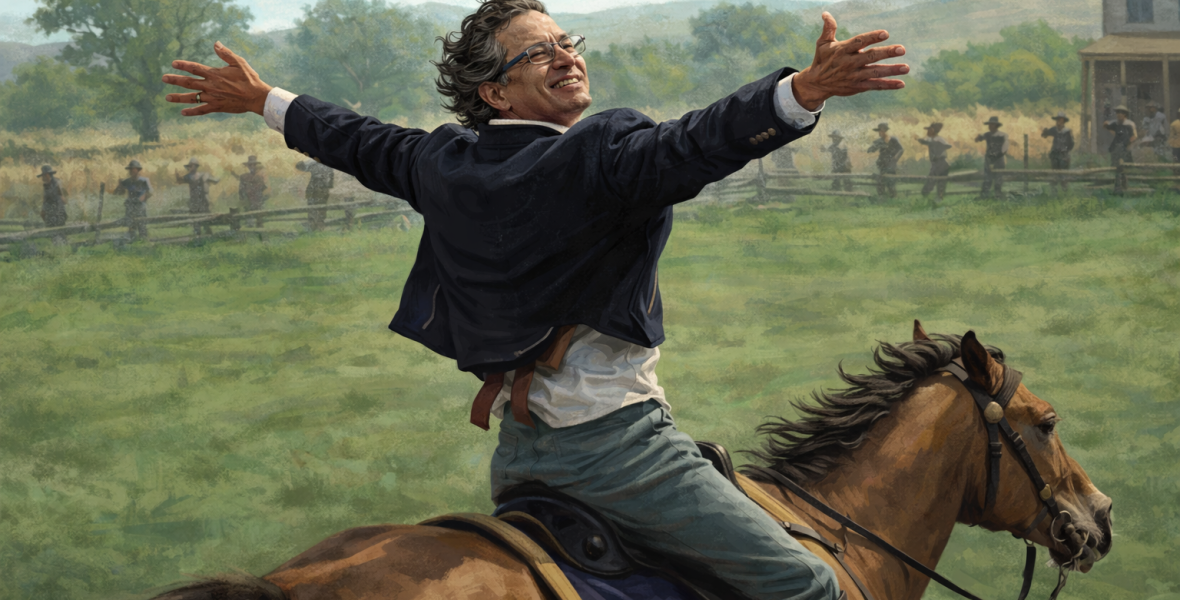 Petro actúa como si estuviera filmando su propia escena de consagración histórica.