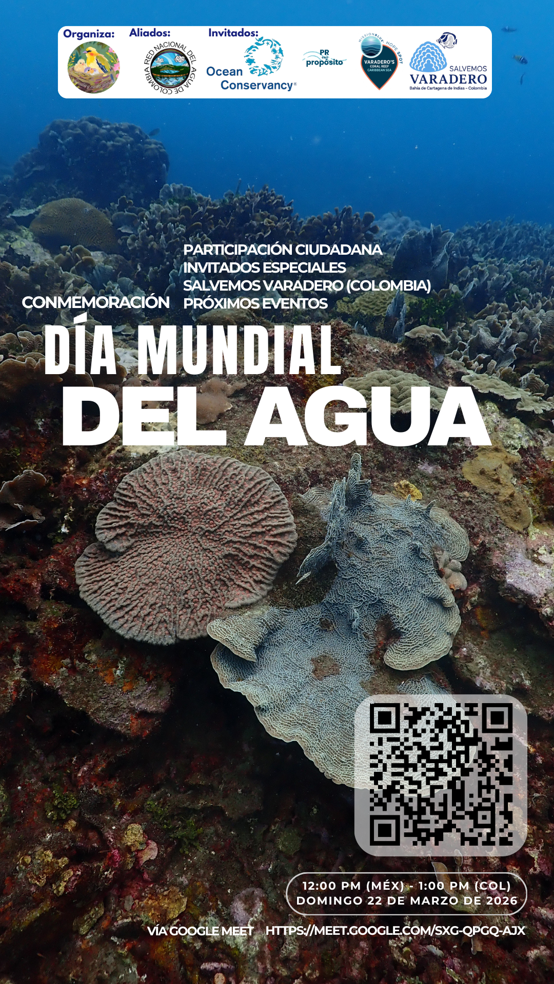 Invitación: el 22 de marzo se conmemorará el Día Mundial del Agua. Entre los muchos eventos locales que seguramente están programados para este fin de semana con puente, cordialmente se invita a la ciudadanía a conocer algunas experiencias de protección y defensa de este recurso mañana domingo a la 1:00 PM hora Colombia de manera virtual, con iniciativas invitadas desde México y Colombia, y hechas por jóvenes. Prográmate: haz clic aquí . Gracias por tu tiempo.